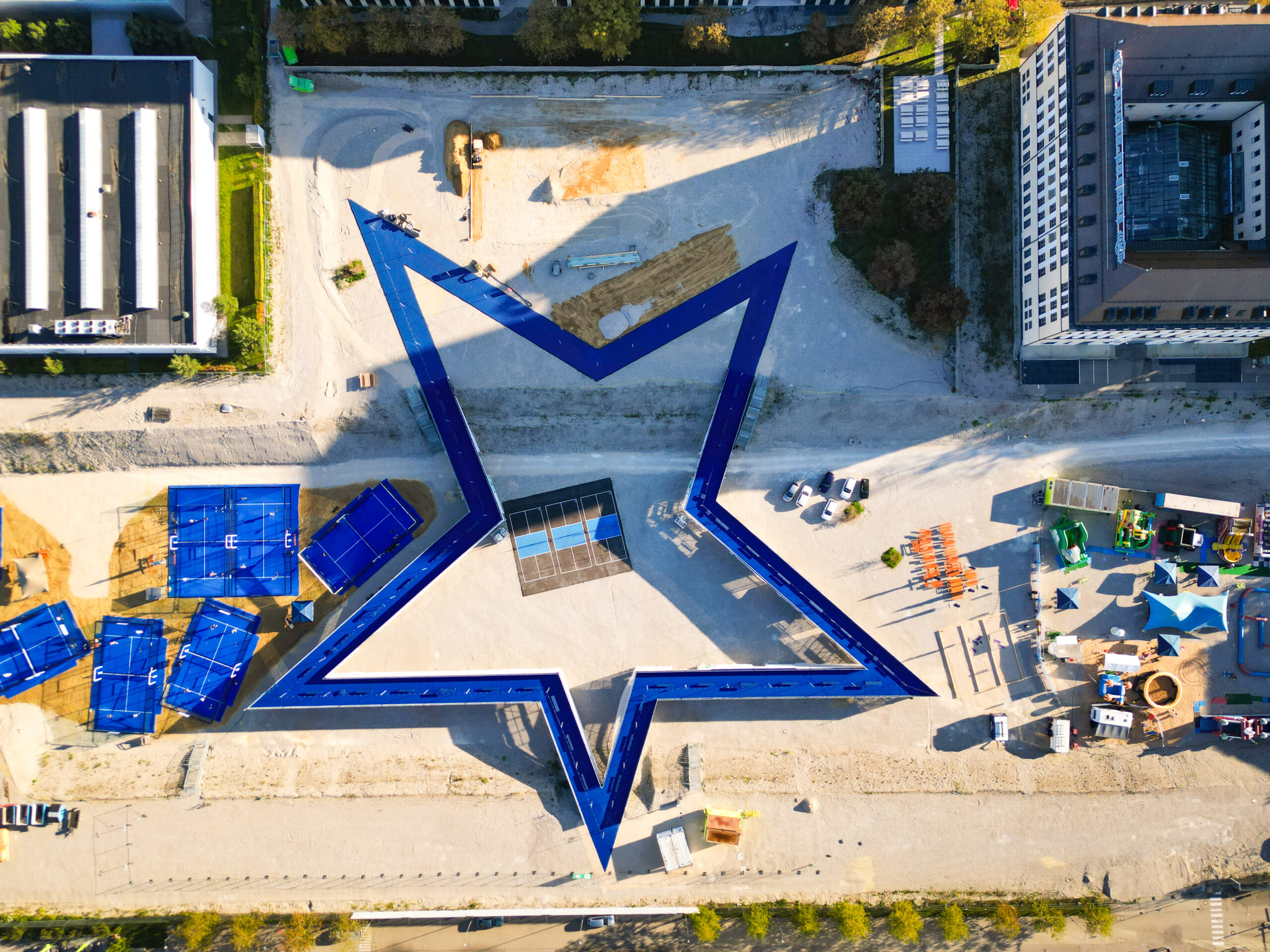 Ob Sport, Events oder entspannte Feierabendstunden – LUCKY STAR verbindet Menschen und Momente und macht aus einer Brache ein architektonisches Highlight. Der begehbare Stern ist dabei nicht nur ein bauliches Statement, sondern auch ein Symbol für Zugang, Vielfalt und Gemeinschaft. Jeder der Bereiche hat einen eigenen Charakter, aber alle sind offen für Begegnung, Bewegung und Miteinander.